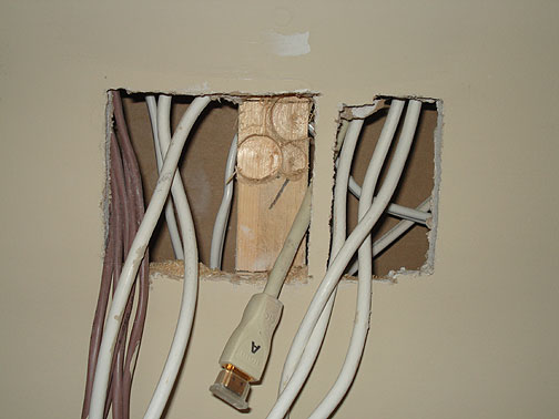The wires are sorted and appropriate holes are prepared for concealment and connector plates.